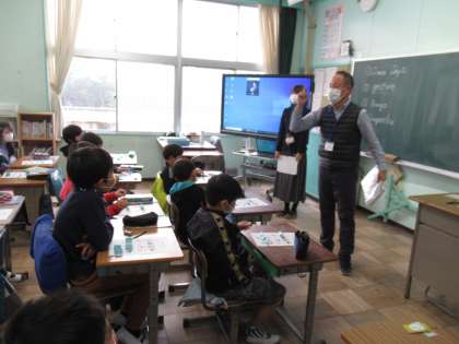 3年生の外国語活動です。今まで習ってきた動物などの英単語を、楽しいゲームをしながら確認していました。ビンゴならぬボンゴというゲームで、楽しく学び進めていました。