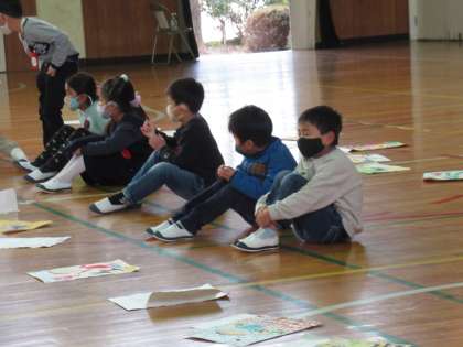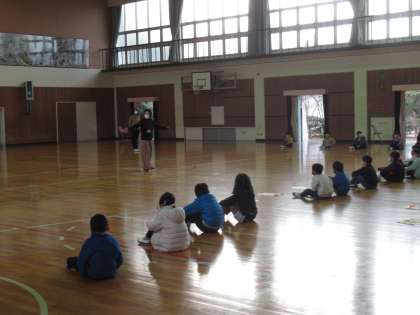 1時間目、体育館で1年生が授業公開に向けて、練習をしていました。この学級は2月9日が公開日なのですが、寸暇を惜しんで貴重な体育館での練習です。