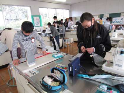 5年生の家庭科です。エプロンづくりが進んでいます。ミシンにも徐々に慣れてきていますし、今日はアイロンも使っていました。できることがどんどん増えていきますね。