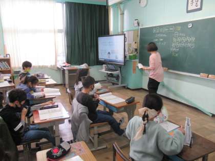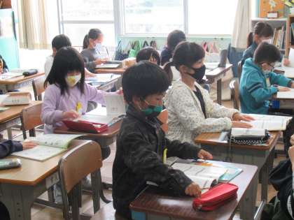 3年生の算数です。教科書の最初にある「わくわく算数学習」のページで、「何百のたし算とひき算」の復習をしていました。3年生の学習がスムーズにスタートできるように、こういった流れになっています。
