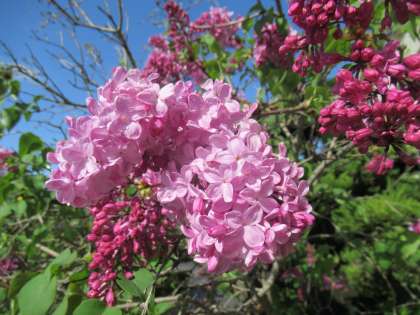 保健室の前のライラックの花が咲き始めました。ライラックの花言葉は「思い出」「友情」。紫のライラックについては、さらに「恋の芽生え」「初恋」だそうです。