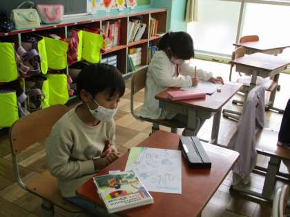 今日も1年生は、体育、国語、生活、音楽の勉強をしました。国語の時間の最後に、プリントで「せんのれんしゅう」をしていました。筆記具の扱いに徐々に慣れていきたいですね。
