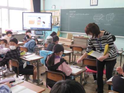 5年生の算数です。体積の学習に入りました。「二つの箱が同じかどうか」、この問いで、子どもたちは一気に熟考ムード。辺の長さを比較したり、すでに習った面積のことを思い出したり・・・。考えることって、楽しいですね。