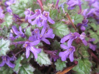 足下にひっそりと咲く雑草もきれいなものです。今日見つけたのはキランソウ。シソ科キランソウ属、要するに雑草です。別名ジゴクノカマノフタ(地獄の釜の蓋)で、由来を調べてみると、葉が地面に張り付くように広がる様子が地獄の釜の蓋に見立てられているとか、さまざまな病気に薬草として効能があるから医者がいらず「これで地獄に落ちないで済む」ということだそうです。調べてみると、いろいろとおもしろいです。