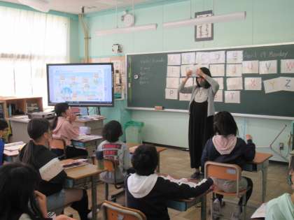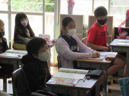 5年生の外国語科の学習です。5,6年生は、外国語活動ではなく外国語科です。「Hello,friends.」の学習が始まりました。自己紹介の表現を学んでいきます。