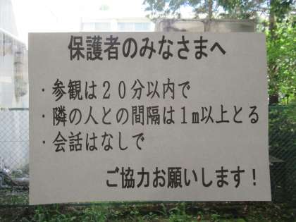 手指消毒をした上で、感染症対策にご協力いただきながら、お子様の様子をご覧ください。