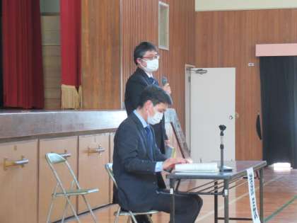 修学旅行説明会終了後、PTA総会を実施しました。令和2年度活動報告、決算報告が承認され、令和3年度役員、委員の承認、活動計画、予算案等の承認がなされました。新旧会長から、あいさつがあり、無事に令和3年度の体制がスタートしました。コロナ禍は続きますが、引き続き旭北小PTA活動へのご理解・ご協力をよろしくお願いします。なお、本日、都合がつかなかった方には、お子様を通じて総会要項を配付しますので、内容をご確認ください。