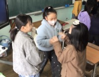 4年生の音楽です。「さくらさくら」を聴いて、琴の魅力について学んでいました。映像つきの琴の演奏を聴いたり、先生が琴の実物の音を出すのを聴いたりしました。約1300年前ごろに中国から伝わった楽器の音色は、趣がありますね。
