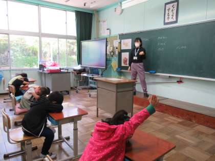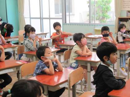 1年生の学活で、学級目標を決めていました。どんな学級にしたいかみんなで意見を出し合い、キーワードをしぼっていました。最終的にどんな言葉になるか楽しみですが、この話し合いを通して、周りの仲間の思いを共有することができたことに価値がありますね。