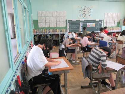 6年生の国語です。学んできた「時計の時間と心の時間」のテストをしてきました。日々集中して授業を受けているので、きっとよくできたことでしょう。