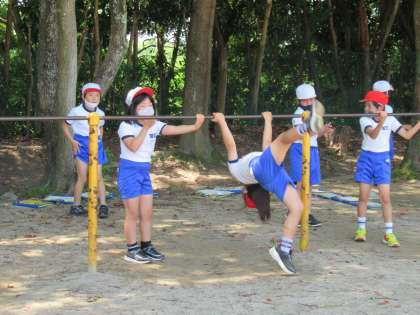 3年生の体育です。鉄棒の練習が進んでいます。今日は各自の課題に合わせた練習をしていて、逆上がりなどの難しい技の練習をしている子もいました。みんな一生懸命練習していて、体の使い方がうまくなってきているように感じます。