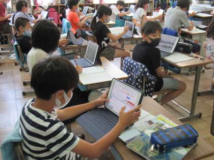5年生の社会です。「高い土地のくらし」の学習が進んでいます。今日、この学級では嬬恋村の観光に着目し、資料をもとにどうして観光客が集まるのかを調べていました。社会事象をとらえる力が少しずつついてきています。