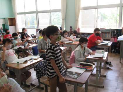 5年生の国語で、俳句について学んでいます。「知多の友」を使って自作の俳句を作っています。今日は、前回作った俳句を、教科書の「表現を工夫しよう」で紹介されている工夫を意識し、さらによい俳句になるように改善策を考えていました。