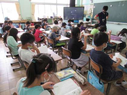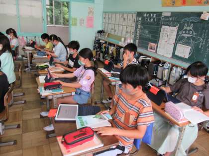 5年生の国語で俳句を作っていました。自分なりに作った作品について、よりよい表現になるための工夫を考えていました。なにかヒントになるものがないか、タブレットでも調べていました。「言葉をよりすぐる」という目標に向かっていきます。
