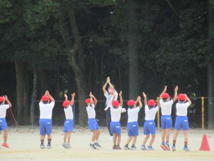 1年生の運動会練習。ダンシング玉入れ、だんだんと形になってきました。今日は、一通り流れを確認していました。みんな笑顔で楽しそう。いい光景です。