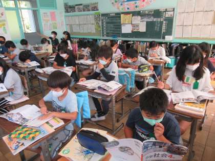 4年生の社会で、「地震による災害」の学習が進んでいます。「だいすき大愛知」の資料を使って、震災からの復旧、そして復興について追究していました。