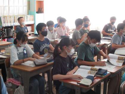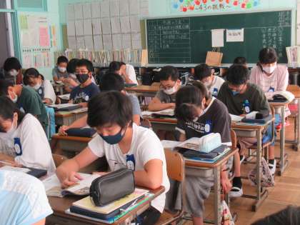 6年生の社会科です。今日は教科書の資料をもとに、徳川家康がいかに戦乱の世を治めようとしたか追究していました。授業の雰囲気、ノートのまとめ方、さすが6年生という感じがします。