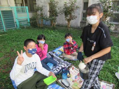 先日に続き、別の学級で5年生の飯ごう炊さん体験が、行われました。きっと想像以上にうまくできたのでしょうね。思わずみんな笑顔があふれ出ます。すごくいい光景です。