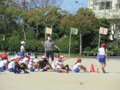 5年生が運動会練習をしていました。各学年、徒競走の流れを確認したり、学年種目の練習をしたりと、本番に向けて進んでいます。