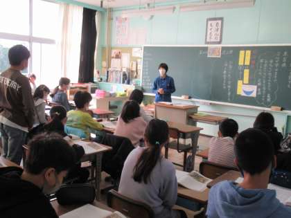 6年生の道徳で、「米百俵」という話を読んで、郷土、地域について考えていました。明治維新の戦いで敗れた長岡藩の大参事、小林虎三郎が米をお金にかえて学校を建てることを決心した思いに迫りながら、意見を出し合っていました。