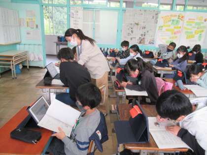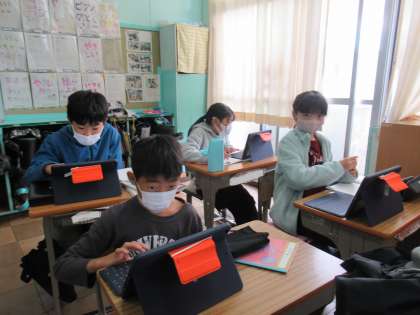4年生の社会科で,古くから伝わるお祭りについて調べていました。北設楽郡の花祭り、津島の天王祭、国府宮のはだか祭り、そして旭北小学区にある日長神社の御馬頭祭りは、尾張、三河の各地であるオマント(馬の塔)の流れ。祭りや年中行事に込められた人々の願いを考えます。