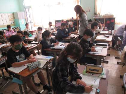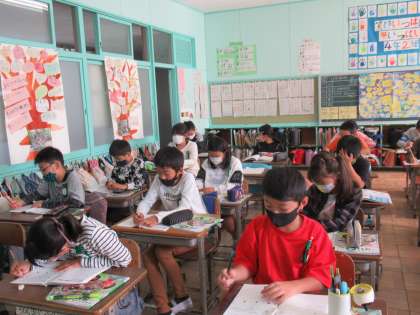 4年生の理科で、ものの温度と体積の学習に入りました。今日は、とじこめた空気をあたためたり冷やしたりすると体積が変わるかどうかについて、予想を立てて話し合っていました。今後、実験を通して空気や水の体積について学んでいきます。