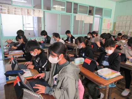 6年生の社会科で、幕末から明治にかけての新しい政治について学んでいます。今日は、農民の立場から、どのような政治になるとありがたいか考えていました。このあと実際の政治について調べ、明治政府の国作りについて理解を深めます。