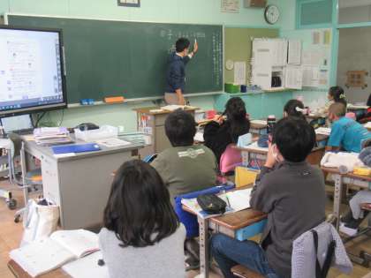 5年生の算数で、分数の学習が進んでいます。今日は四分の三、五分の三といった分数を、小数で表す勉強です。分数の中には、わりきれなくて、きちんとした小数で表すことができないものがあることも学びます。