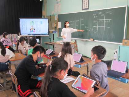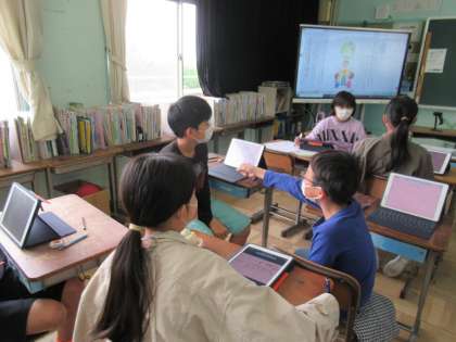 5年生の国語で、「きいて、きいて、きいてみよう」の学習に入りました。インタビューという形式で、話の意図を考えて聞き合う活動をします。今日は、タブレットで、聞く内容について計画を立てていました。どんなやりとりになりそうか考え、インタビューの準備をしていきます。