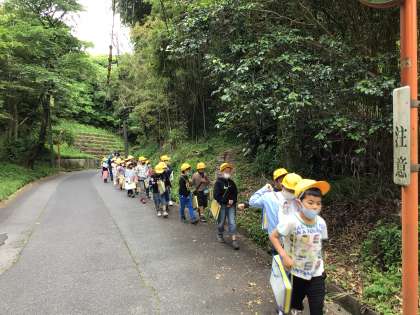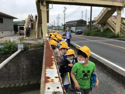 日長方面にある神社や駅、川などを見て、さまざまな発見をしていました。また、鳥の鳴き声を聞いたり、いろいろな木や花を見つけたりと、自然豊かな町ならではの発見もたくさんあったようです。日長の町の素敵なところをたくさん見つけることができた町探検1日目でした。