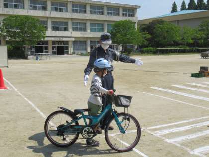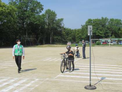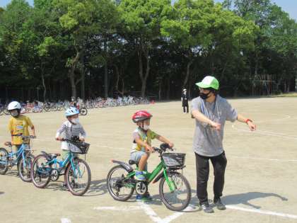 基本的な自転車の乗り方の技術について、まだまだ練習が必要です。ヘルメットをあごひもをしっかり締めることなども含め、各家庭で大人の監督のもと練習をしていっていただければと思います。