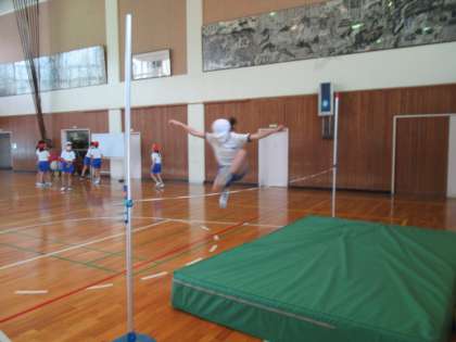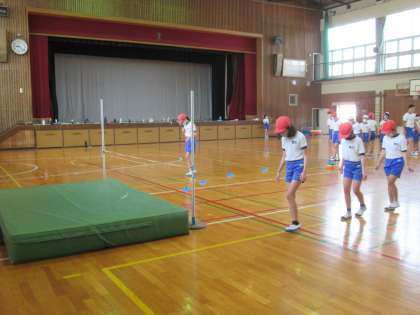 6年生の体育で、走り高跳びの学習が始まりました。助走の距離を調整したり、跳び方を考えたりしながら、活動が進んでいます。どれだけ高くまで跳べるようになるか、楽しみです。