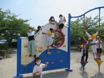2年生の生活科「どきどき わくわく まちたんけん」。5/16の日長方面に続き、今日は上げ方面に出かけました。新舞子東公園で、休憩をし、クラス写真を撮ったりして、楽しいひとときを過ごしました。暑い日ですので、木陰は助かりますね。