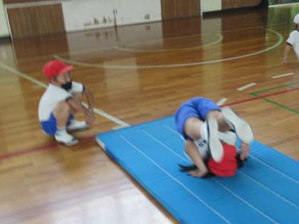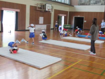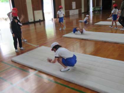2年生の体育です。マットを使った運動遊びの授業が進んでいます。今日は、後ろに転がる動きを楽しんでいました。何度もやっているうちに体の動きがスムーズになっていました。