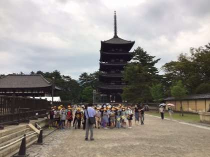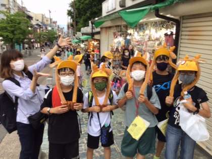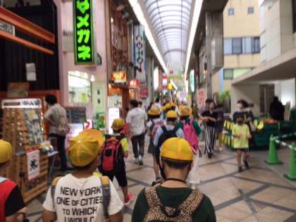 おみやげ、クラス写真を終え、アーケードを通って宿に向かいます。