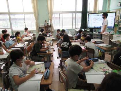 3年生の理科で、「こん虫の世界」の学習が進んでいます。今日は、実際に虫の体を観察し、どのようなつくりになっているかを調べていました。バッタやトンボなど、それぞれのこん虫について調べますが、最終的には「こん虫」というくくりでのまとめをします。