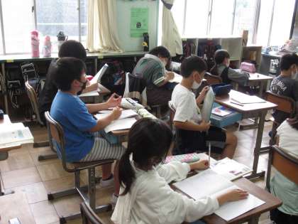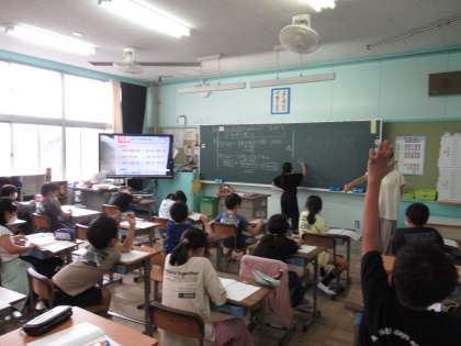 4年生の算数で、「式と計算の順じょ」の学習が進んでいます。( )を使って式を表し、計算のきまりを使って、工夫して計算する力を身につけます。自分たちで問題を作り、その問題をみんなで解いていました。