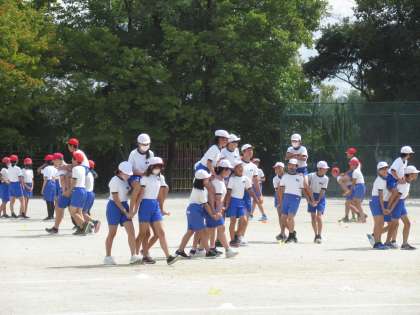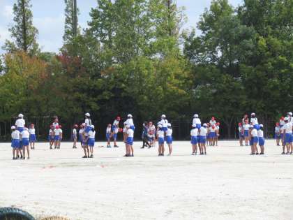 6年生の運動会の練習の様子です。「天下統一〜旭北の陣〜」と題して、騎馬戦を行います。勇ましい合戦が繰り広げられます。
