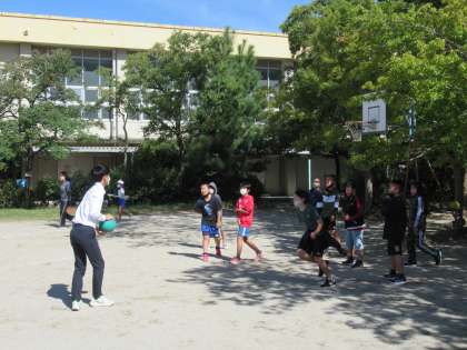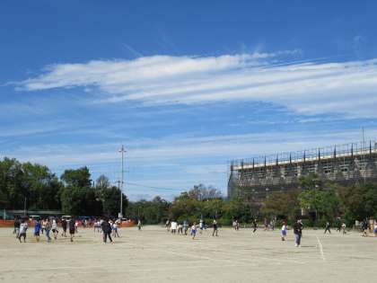 気持ちよい秋晴れの空の下、子どもたちはなかよしタイムを楽しんでいます。