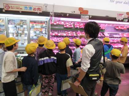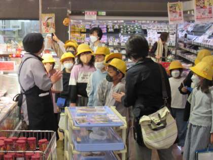3年生が、校外学習にでかけました。マックスバリュ、梅の館、オカトクさんに行き、社会科の学習をします。これは、マックスバリュでの様子です。お店の方からいろいろなお話を聞き、スーパーについて学びを深めていました。