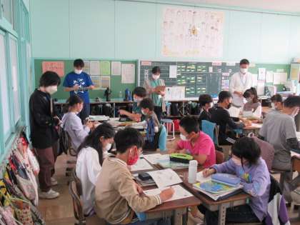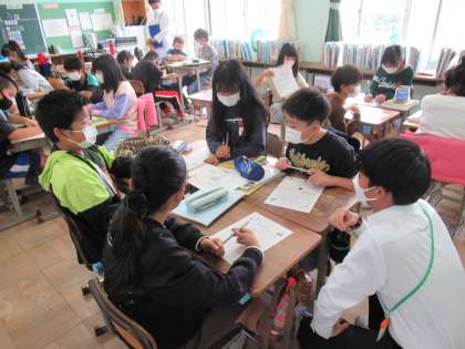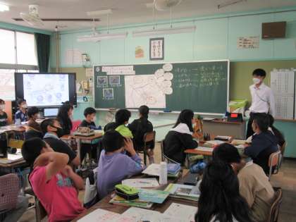 5年生の社会科で、「くらしや産業を支える工業生産」の学習が進んでいます。今日は、この単元の山場、工業地帯がなぜ太平洋ベルトに集まっているか自分たちで考える授業でした。まず、自分で考えをもち、グループで話し合い、全体で考えを深めていました。教育実習の先生が、ここまで築きあげた信頼関係のもと、子どもたちの良さを引き出しながら授業を進めていました。