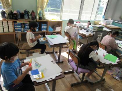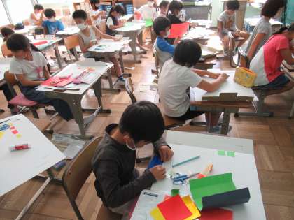2年生の図工で、楽しい学習が始まりました。「わくわくおはなしゲーム」。工作の要素を取り入れたすごろくを作ります。台となる部分を組み立てたり、飾りを考えたりしていました。どんなストーリーのすごろくができあがるか、楽しみです。