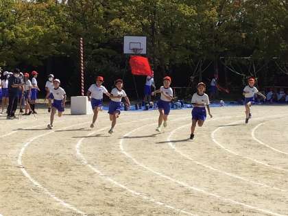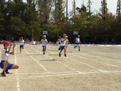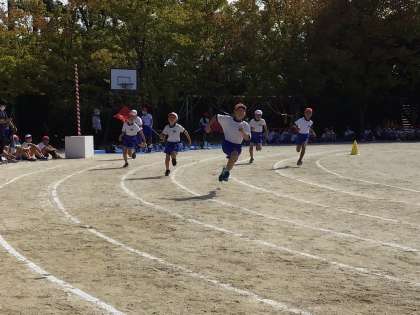 続いて4年生の徒競走です。5年生に負けないくらいの頑張りで、ゴールを目指していました。
