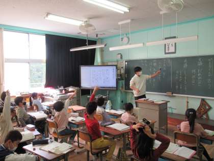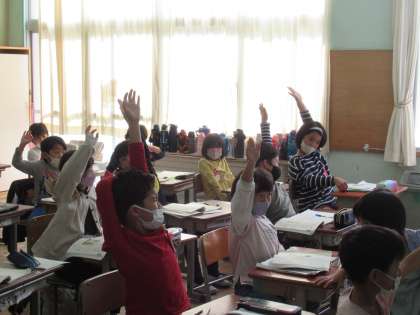 2年生の国語で、「主語と述語に気をつけよう」の学習をしています。「お手紙」の物語の中に出てきた文を使って、「だれが(は)」、「何が(は)」に当たる言葉が主語、「どうする」「どんなだ」「なんだ」に当たる言葉が述語、ということを学びました。各学年、こういった言葉の学習も少しずつ進めれらています。