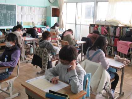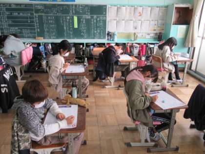 6年生の教室でもテストが行われていました。2学期末までに学んだ新出漢字等について確認するテストです。中学進学に向けて、定着できていないことがないか、確認していきます。