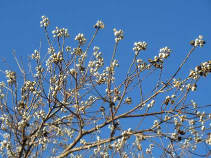 冬空ですがときおり太陽の光も届く朝となりました。ナンキンハゼの実が白く輝いています。