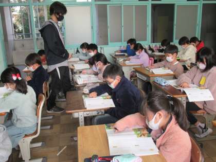 3年生の道徳で、「ヒキガエルとロバ」という教材文を読んで、生き物の命について考えていました。学校帰りの登場人物二人の前に現れたヒキガエル。そのヒキガエルに向かって小石を投げて遊んでいたところ、荷車を背負ったロバが通りかかり・・・。子どもたちは、冒頭から教材文に引き込まれていました。