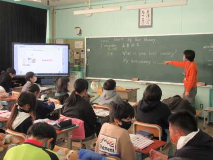 6年生の外国語の授業で、小学校生活の思い出を英語で伝え合う活動をしています。動画で学校行事の英語表現を学び、実際に英語で会話をしていました。6年生はちょうど卒業アルバムを作っているときで、タイムリーな学習内容と言えますね。各教科の授業も、少しずつ卒業に向かっています。