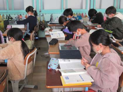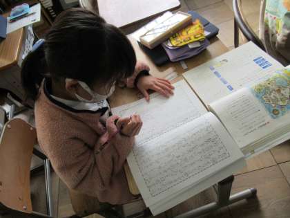 3年生の国語です。冒険物語を書いています。子どもたちの書きぶりを見ると、もう「執筆」と言ったほうがしっくりきますね。これは完成が楽しみです。