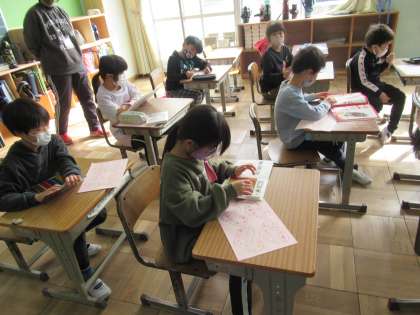 2年生の生活科で、「わたしのこと 聞いてきたよ」の学習として、学級の仲間から、自分の良さや成長についてコメントをもらいます。今日は、周りの友達のことを思い浮かべて、コメントのカードを書きました。心温まる活動です。